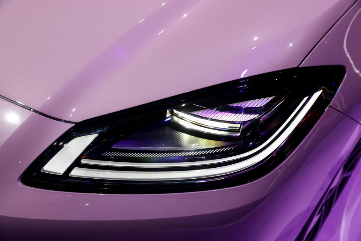 颜色的搭配上,埃安RT也深得当下年轻人的喜好。如今A级车在颜色方面是相对保守的,热卖车型多数为“黑白灰银”,这是不会错的选择。但埃安RT不同,月华米、水晶紫这种非常特别的色调,在订单占比中超过60%。在灯光璀璨的现场来看,其反射的光泽的确让人流连忘返。这都源于成本颇高的颜料应用,比如月华米、日冕红、极地白三款车色中,加入了最具光泽感的天然云母珠光颜料,不同于行业将珠光与金属漆混合喷涂的做法,埃安将金属漆与天然榆木珠光漆单独分层,珠光层厚度更是行业标准的三倍,难怪埃安RT底气十足“比同级多一层,比同级厚三倍”。在豪华品牌中,珠光车漆基本都要加价选装,但埃安RT下定既享有;而水晶紫、海荧灰、夜影黑则加入了奔驰S级同款“银元铝粉”,比普通铝粉多五倍打磨抛光工时的“银元铝粉”,让车身随光变色,流光溢彩。