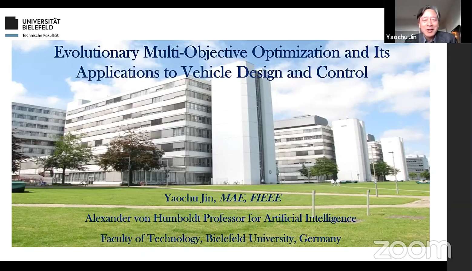在主题演讲环节,德国比勒菲尔德大学工程学院“洪堡人工智能讲席教授”,兼英国萨里大学计算机系“计算智能”讲席教授,欧洲科学院院士金耀初教授做了题为《人工智能在电动化汽车技术研发中的应用与展望》的精彩演讲。金耀初教授首先介绍了演化算法的相关理论,然后结合两个实际工程应用例子(混合动力汽车控制器设计和多场景车辆动态优化)详细解释了如何用机器学习和相关优化算法结合数据驱动理论来解决汽车行业的实际问题。
