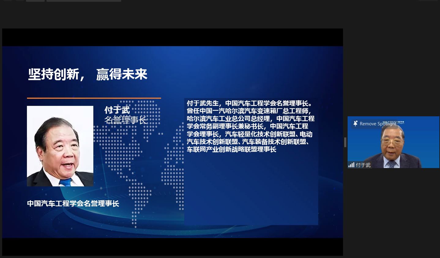 图5:中国汽车工程学会名誉理事长付于武先生题为《坚持创新, 赢得未来》的致辞