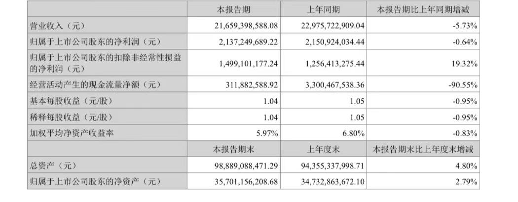 8月22日晚间,亿纬锂能发布了2024年半年度报告,上半年实现营业收入216.59亿元,同比下降5.73%;归属于上市公司股东的净利润为21.37亿元,同比下降0.64%;实现扣除非经常性损益的净利润为14.99亿元,同比增长19.32%。基本每股收益为1.04元。