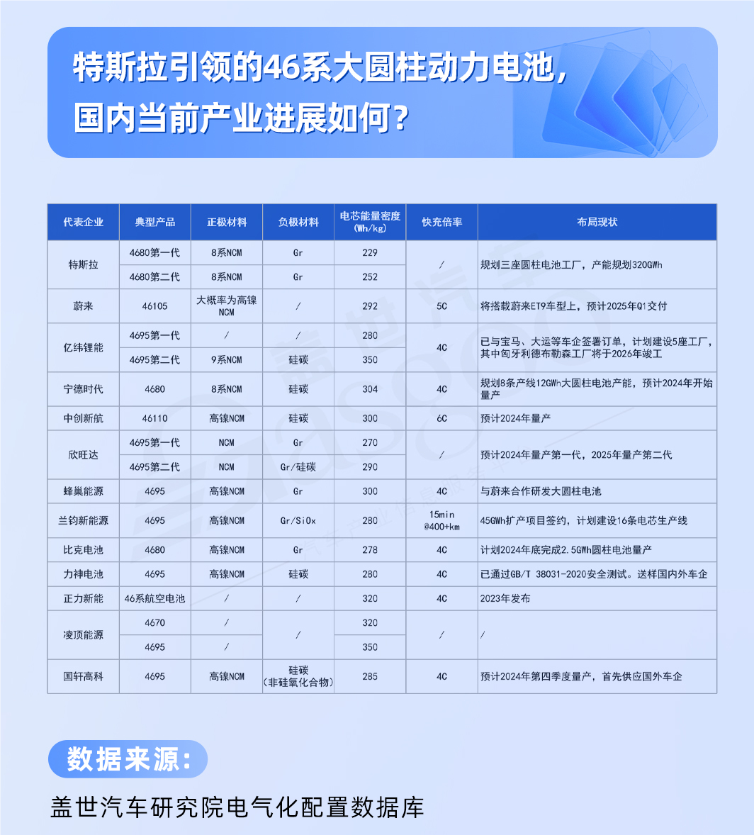 大圆柱动力电池知多少:市场需求稳步增长,46系引领未来 | 盖世电气化配置数据